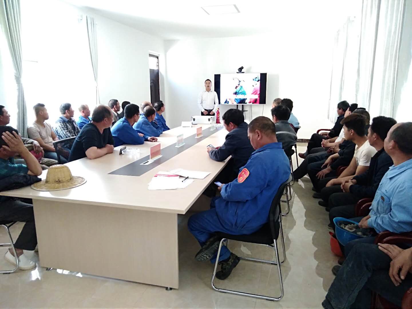此次演練特邀請河南省消防培訓(xùn)中心教官,對參演人員針對露天礦山開采易發(fā)生的滑坡、坍塌、車輛、火災(zāi)典型事故案例及消防、人員急救知識進行了視頻課件教學(xué)培訓(xùn)。參加人員有礦山車間和現(xiàn)代爆破公司共計30余人參加。